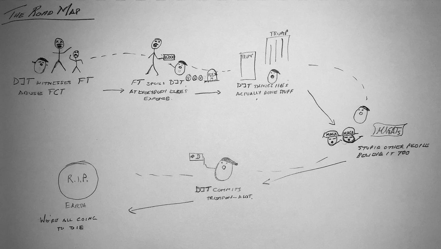 Donald wasn’t created in an instant, however. He is a creature constructed over decades by countless numbers of people. In his current incarnation as leader of and mirror to the Republican Party (the latter, I would argue, is possibly his only valuable function), he is being allowed to continue to wreak havoc and wield influence.*