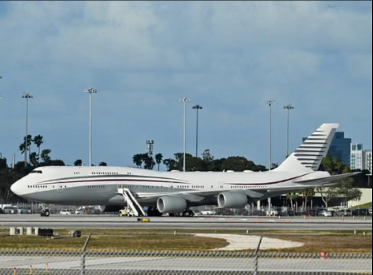 As we know, Donald is the most easily manipulable person on the planet. He’s also the greediest. Any leader of a foreign country who wants something from him is very aware of these things which is why the royal family of Qatar just “gifted” Donald a Boeing 747, under the guise of claiming it was for the United States government.
