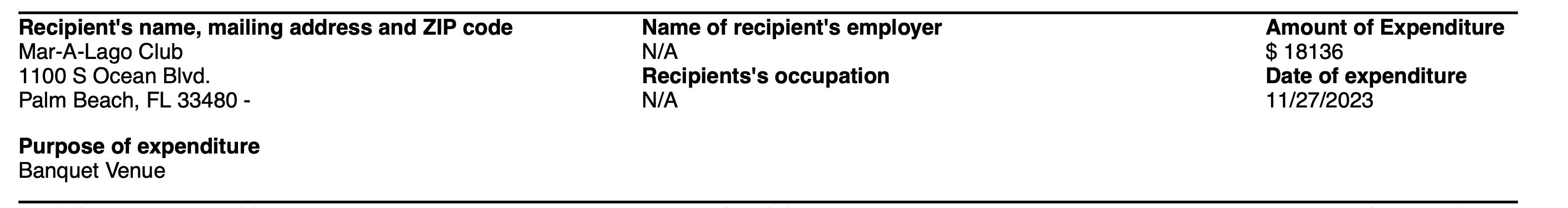 The stated purpose of the fund, started by long-time Trump advisor Michael Glassner, is to help Donald with his enormous legal fees. However, it has spent ZERO dollars on legal fees. Instead, the fund’s largest expense was $18,136 for a party at Mar-a-Lago—while the rest of the money is NOT being used for its intended purpose.