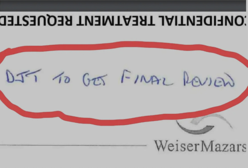 But there it is, clearly spelled out: “DJT TO GET FINAL REVIEW.”