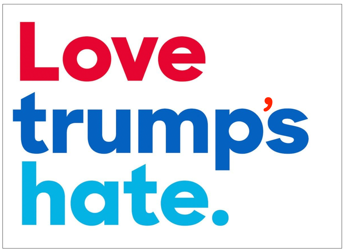 Which is to say, I thought it was a pro-Donald campaign poster—because the people who voted for him in 2016 really did love Donald’s hate and the extent to which he justified, condoned, and validated their own. The shared hatreds of his voters (supporters, followers, cult members) continue to be essential to his base’s devotion to him. And, apparently, it causes them to confuse vitriol with trust.