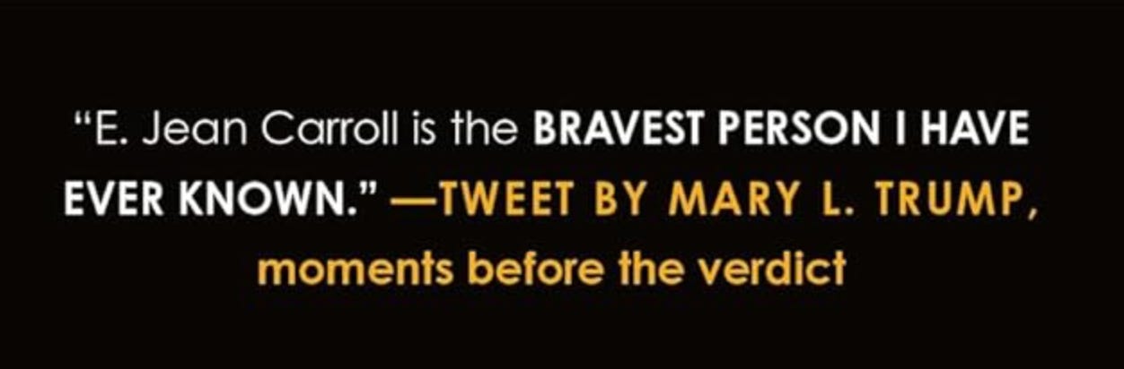 Join me today at 12:00 p.m. ET for a Substack Live with the inimitable badass, human being extraordinaire, and—because I am incredibly lucky—my dear friend—E. Jean Carroll. We’ll be talking about her brilliant new book, Not My Type: One Woman vs. a President and, probably, everything else.