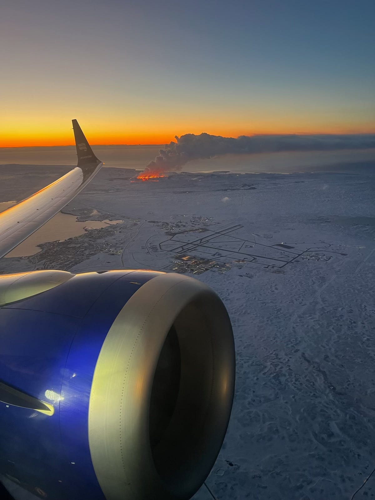 We were able to catch an earlier flight and managed this view—by then the lava plumes were as high as 260 feet.
