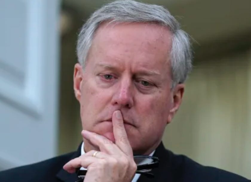 We need Mark Meadows to keep digging himself holes, and running out of options, so he finally throws Donald under the bus.