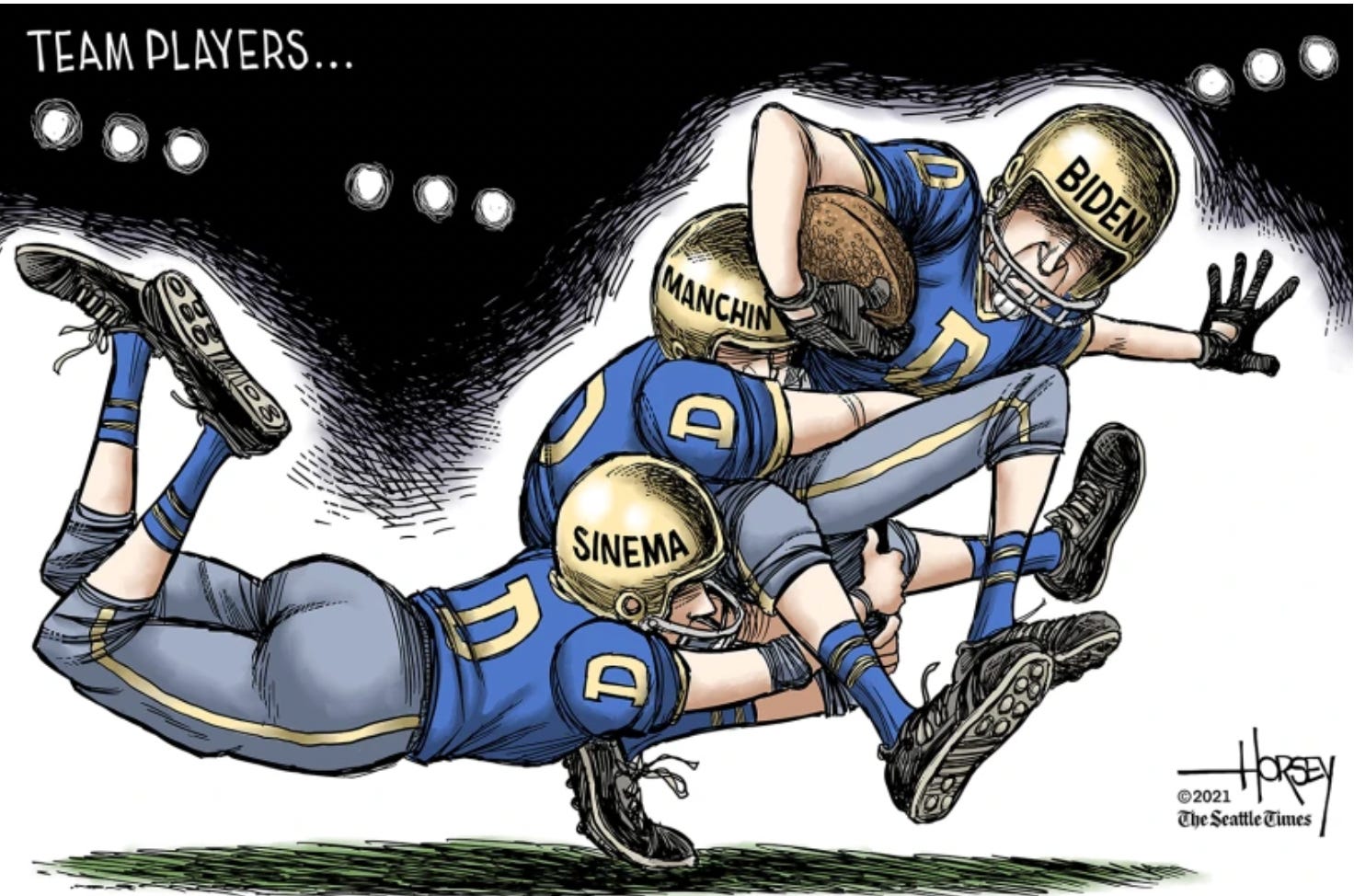 The $3.3m raised by Manchin’s campaign in the first nine months of this year was more than 14 times his haul at the equivalent stage last year, the New York Times added, while the $2.6m taken in by Sinema’s campaign was two and a half times what she netted over the same period in 2020.* “America is not a democracy, part 7,422:” The mainstream media continue to get this wrong, making the story one of Democratic infighting while entirely ignoring the fact that it’s only two Democrats—with a major assist from the entirety of the Republican Party--who are standing in the way of major progress in infrastructure, combating climate change, etc. As I’ve mentioned they focus on the price tag without discussing what is actually being paid for and without, as Robert Reich points out, discussing “the mammoth cost of doing nothing or too little.”