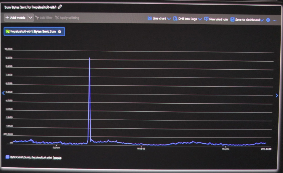 Once they gained accessed, NLRB employees noticed a large spike in data leaving the agency, which we can see in this chart here:
