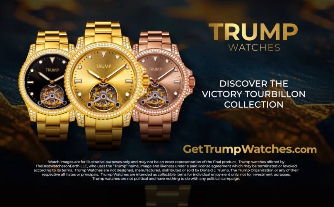 According to the small print, the watches are not “designed, manufactured, distributed, or sold” by Trump or the Trump Organization. The company that makes them is actually TheBestWatchesonEarth LLC, which uses the Trump name, image, and likeness “under a paid license agreement.”
