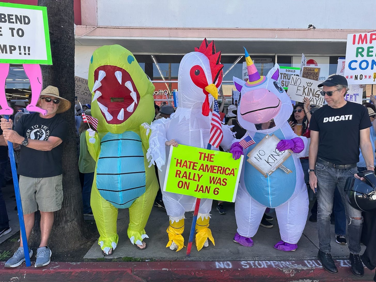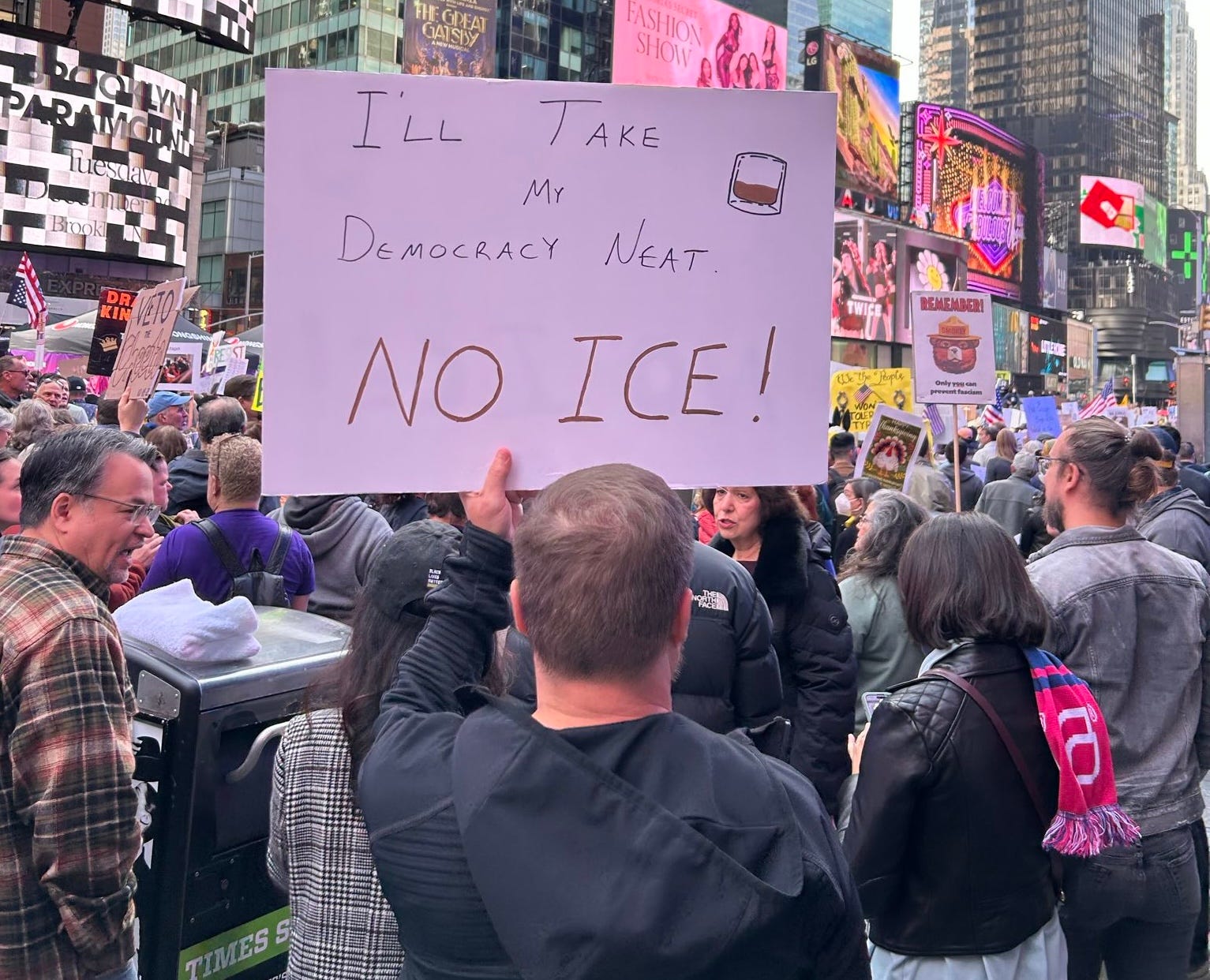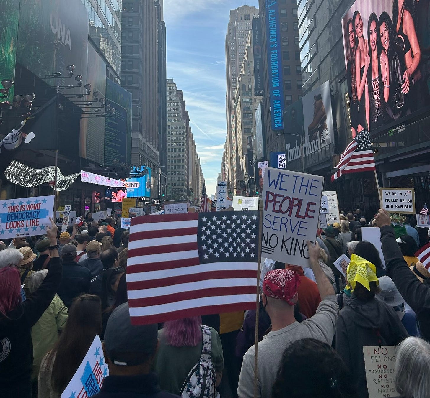 I had to travel home from a conference on Saturday, so I was on a plane during the No Kings march and didn’t make it back to the city in time to join. Luckily, I had cub reporters in both New York and L.A. reporting in.