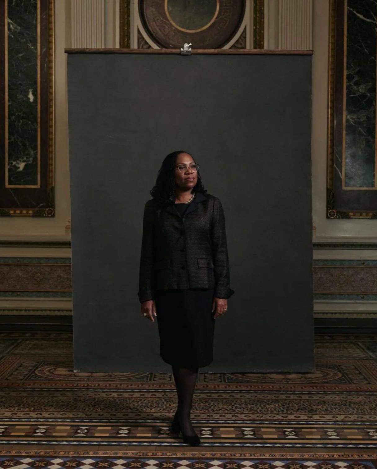 Lelanie Foster, a Bronx-based photographer whose work is “a tribute to Black life and culture” and whose work has appeared in The New York Times and Vogue, among many others, took Justice Jackson official portrait. She said, “My vision was to portray regal-ness and composure and poise and dignity, all words that are completely representative of Jackson, and that’s what I wanted to be taken from this image. After everything she went through during the Senate confirmation hearings, I wanted the utmost respect for Jackson to be shown in the image.”